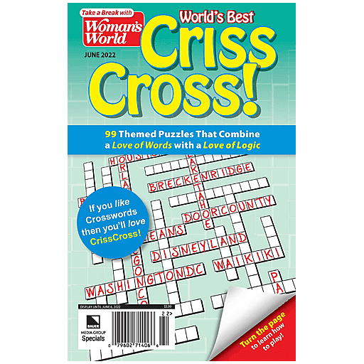 On Sale Date: 03/08/2022. Off Sale Date: 04/15/2022. Take a break with Woman's World. June 2022. 99 themed puzzles that combine a love of words with a love of logic. If you like Crosswords then you'll love CrissCross! Turn the page to learn how to play!